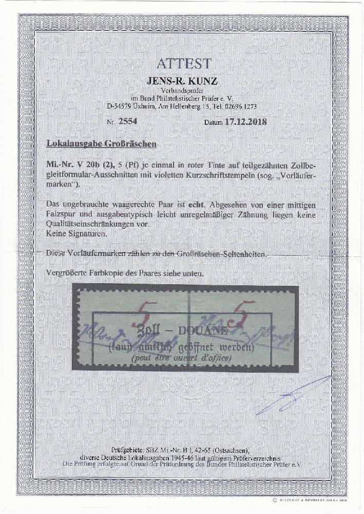 | Prüfgebiet: | Deutsche Lokalausgaben 1945 Großräschen |
