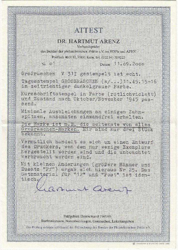 | Prüfgebiet: | Deutsche Lokalausgaben 1945 Großräschen |