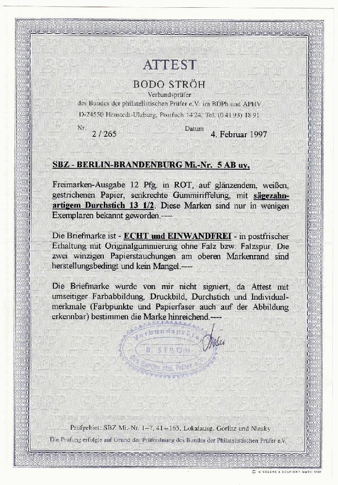 | Prüfgebiet: | Alliierte Besetzung SBZ Berlin-Brandenburg |