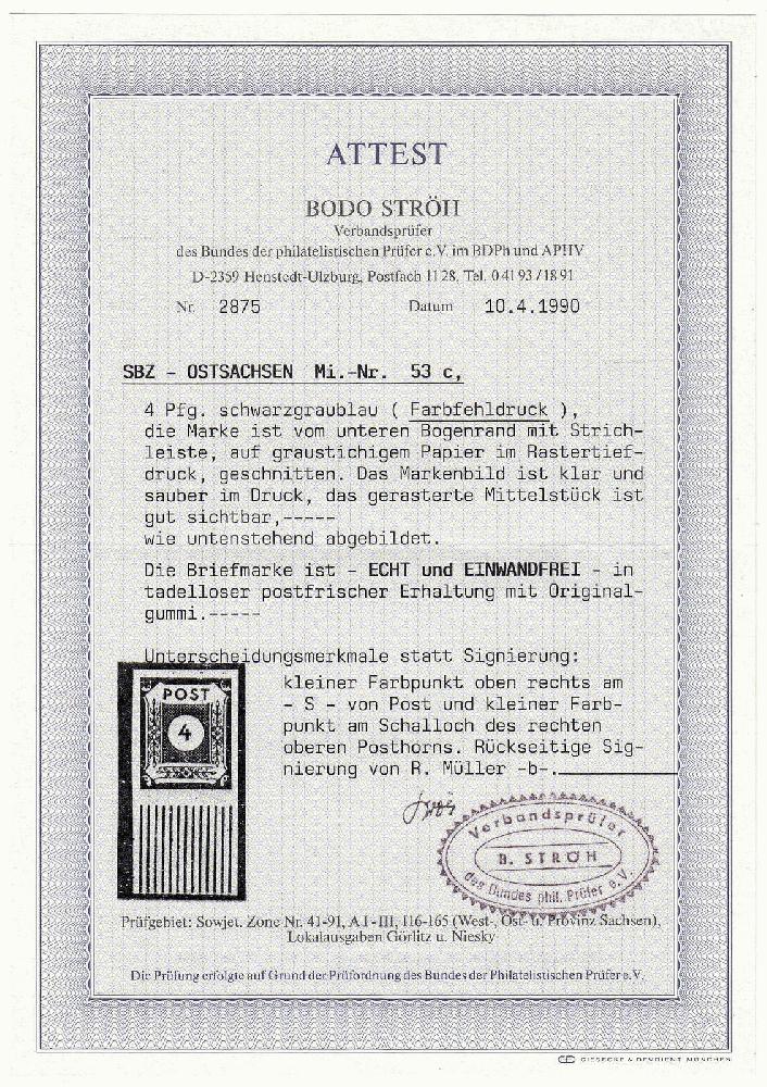 | Prüfer: | Ströh, Bodo (BPP (Bund Philatelistischer Prüfer)) |