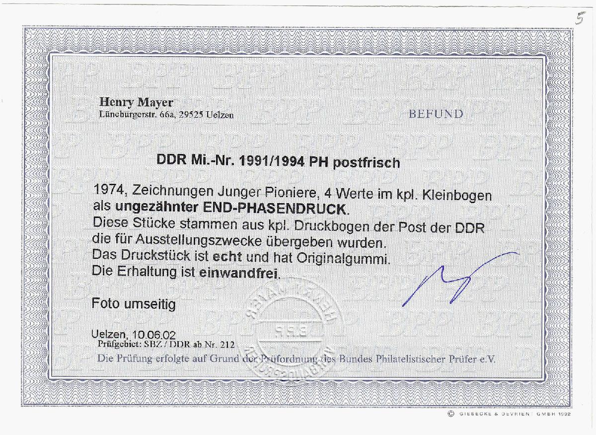 | Zusatzinformationen und Suchstichworte: | 140. & 141. Teutoburger Münzauktion Auktionstermin: 6. - 10. Dezember 2021 Los 4237 DDR Zeichnungen Junger Pioniere 1974, ungezähnter Kleinbogen END-PHASENDRUCKE in postfrischer Luxuserhaltung. Fotobefund Mayer BPP >einwandfrei< Ausruf 90,00 EUR |