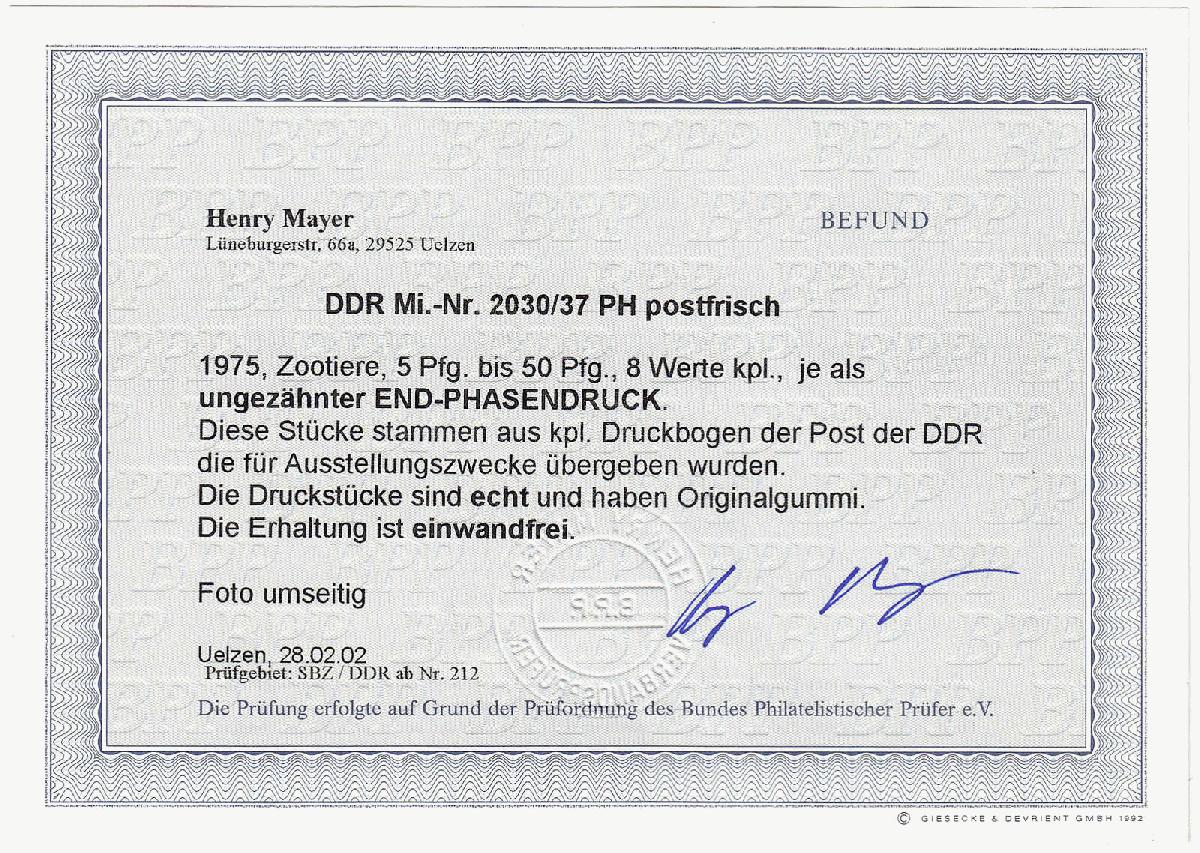 | Zusatzinformationen und Suchstichworte: | 140. & 141. Teutoburger Münzauktion Auktionstermin: 6. - 10. Dezember 2021 Los 4239 DDR Zootiere 1975, kompletter Satz ungezähnter END-PHASENDRUCKE in postfrischer Luxuserhaltung. Fotobefund Mayer BPP >einwandfrei<. ** Ausruf 67,00 EUR |