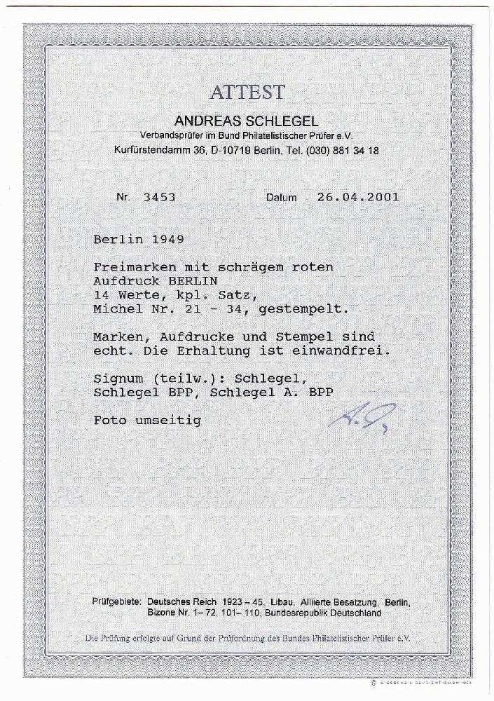| Prüfer: | Schlegel, Andreas (BPP (Bund Philatelistischer Prüfer)) |