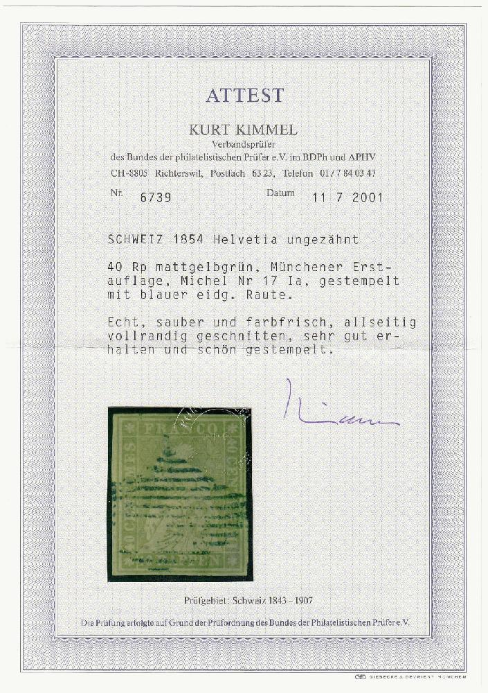 | Zusatzinformationen und Suchstichworte: | 140. & 141. Teutoburger Münzauktion Auktionstermin: 6. - 10. Dezember 2021 Los 4035 Schweiz Sitzende Helvetia 1854, sauber gestempeltes Luxusexemplar mit Fotoattest Kimmel BPP >einwandfrei<. gestempelt Ausruf 225,00 EUR |