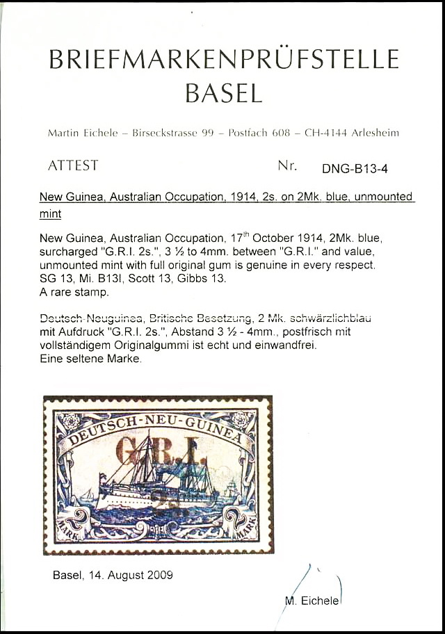 | Prüfgebiet: | Deutsche Kolonien Deutsch-Neuguinea Britische Besetzung |