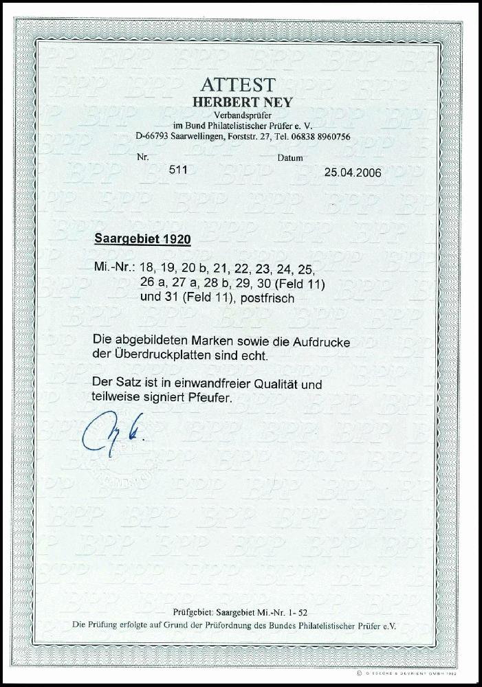 | Prüfgebiet: | Saargebiet (Mi-Nr. 1 - 205) |
