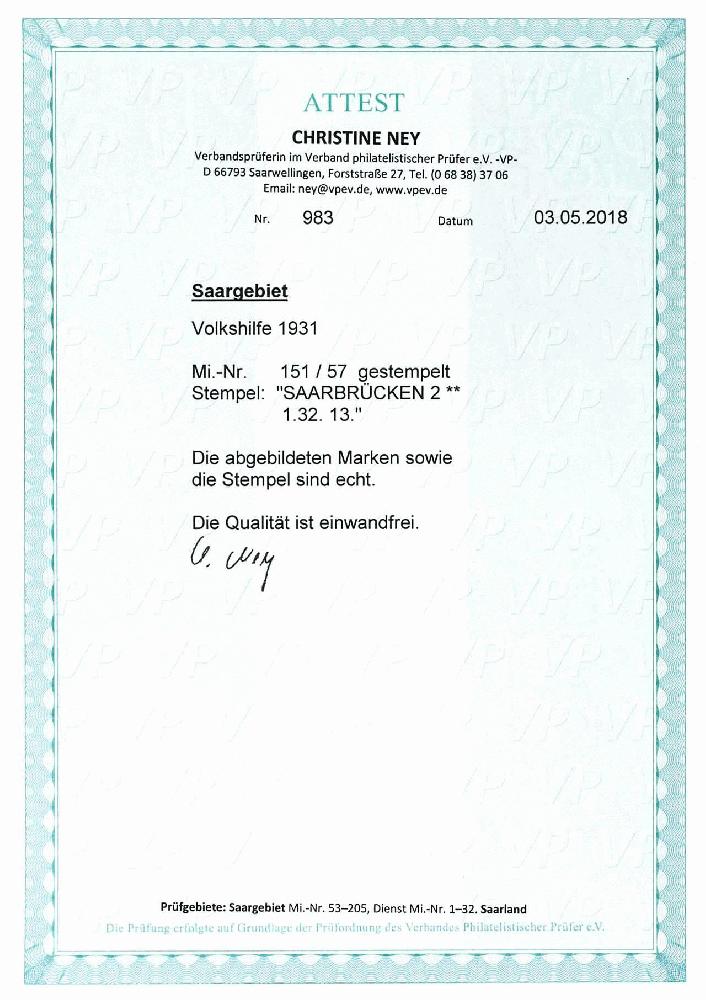 | Prüfgebiet: | Saargebiet (Mi-Nr. 1 - 205) |