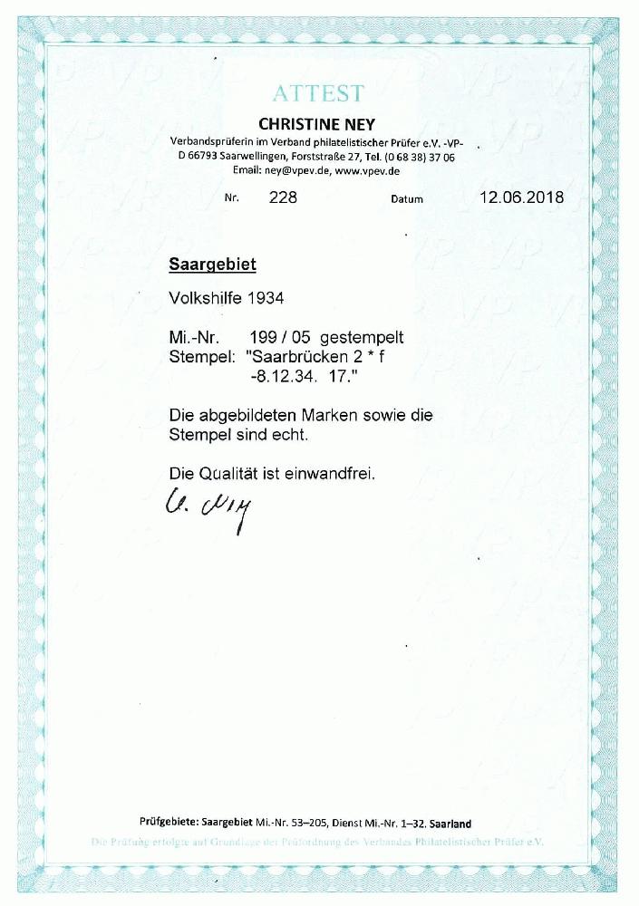 | Prüfgebiet: | Saargebiet (Mi-Nr. 1 - 205) |