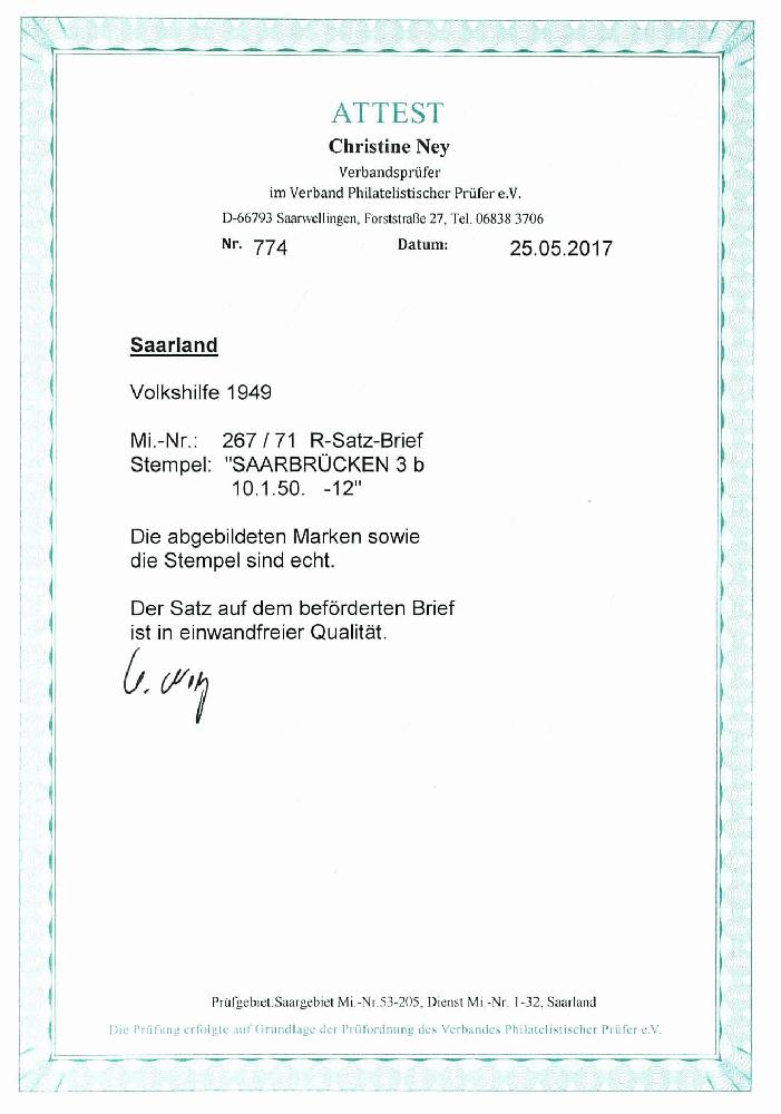 | Prüfgebiet: | Saarland (ab Mi-Nr. 206) |
