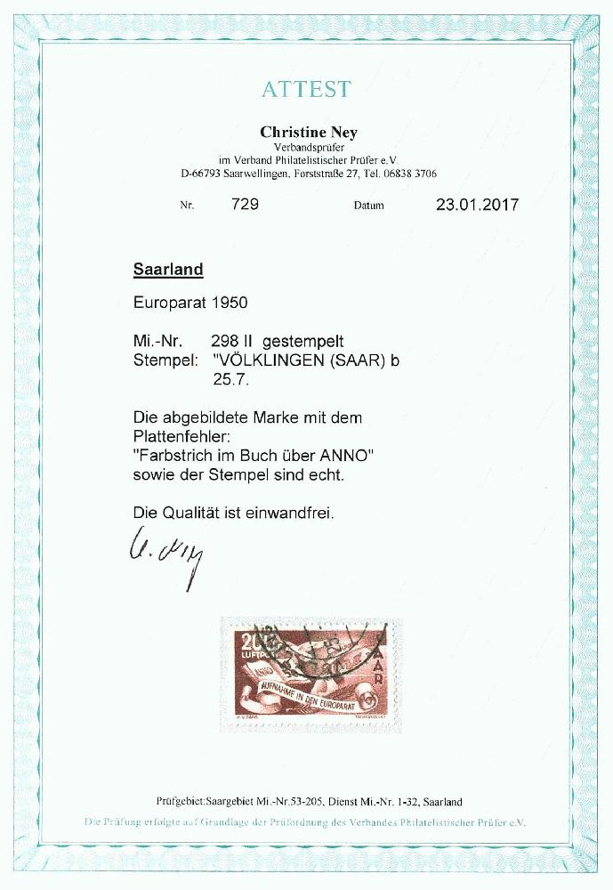| Prüfgebiet: | Saarland (ab Mi-Nr. 206) |
