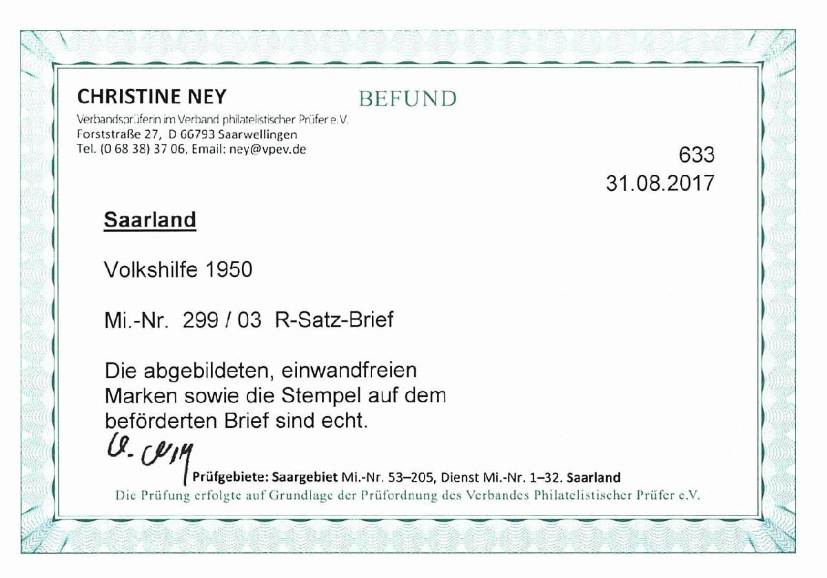 | Prüfgebiet: | Saarland (ab Mi-Nr. 206) |