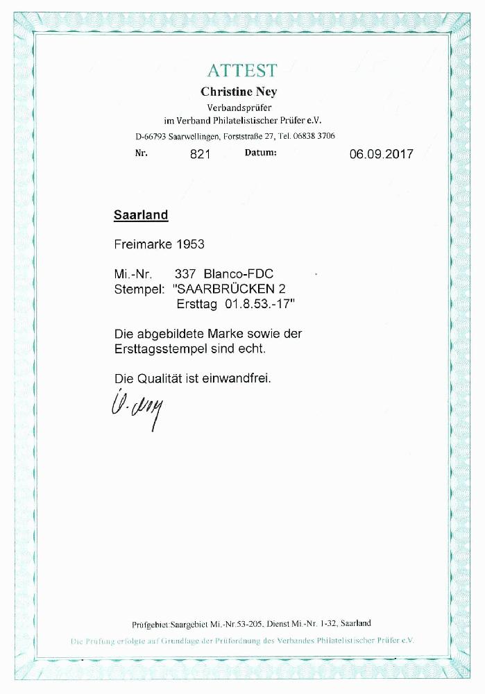 | Zusatzinformationen und Suchstichworte: | Dr. Reinhard Fischer 186. Auktion Auktionstermin: 18. - 21. Mai 2022 Los 3051 Saar 500 Fr. Freimarke auf Blanko-FDC mit Ersttagsstempel SAARBRÜCKEN 2 01.8.53, tadellos, neues Fotoattest Ney VP (2017), Mi. 600.- Ausruf 130,00 EUR |