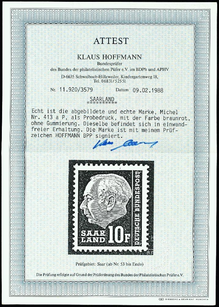 | Prüfgebiet: | Saarland (ab Mi-Nr. 206) |