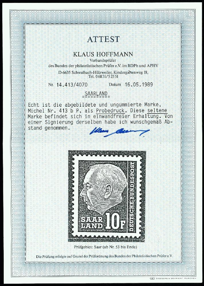 | Prüfgebiet: | Saarland (ab Mi-Nr. 206) |