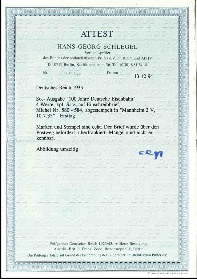 | Prüfer: | Schlegel, Hans-Georg (BPP (Bund Philatelistischer Prüfer)) |