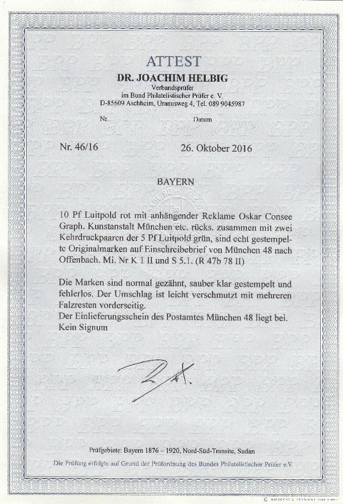 | Prüfgebiet: | Altdeutschland Bayern Zusammendrucke |