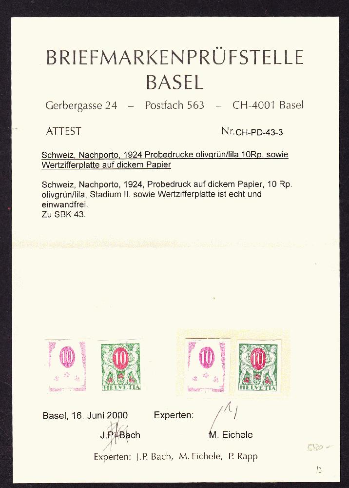 | Zusatzinformationen und Suchstichworte: | Weggler Shop Los 0000100050 Schweiz 1924 Probedrucke 10 Rp auf Kunstdruck-Papier. Ungezähnter Phasendruck und Probedruck. Foto Attest Festpreis 580,00 CHF |