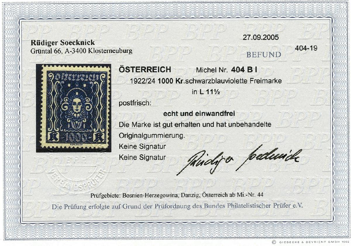 | Prüfer: | Soecknick, Rüdiger (BPP (Bund Philatelistischer Prüfer)) |
