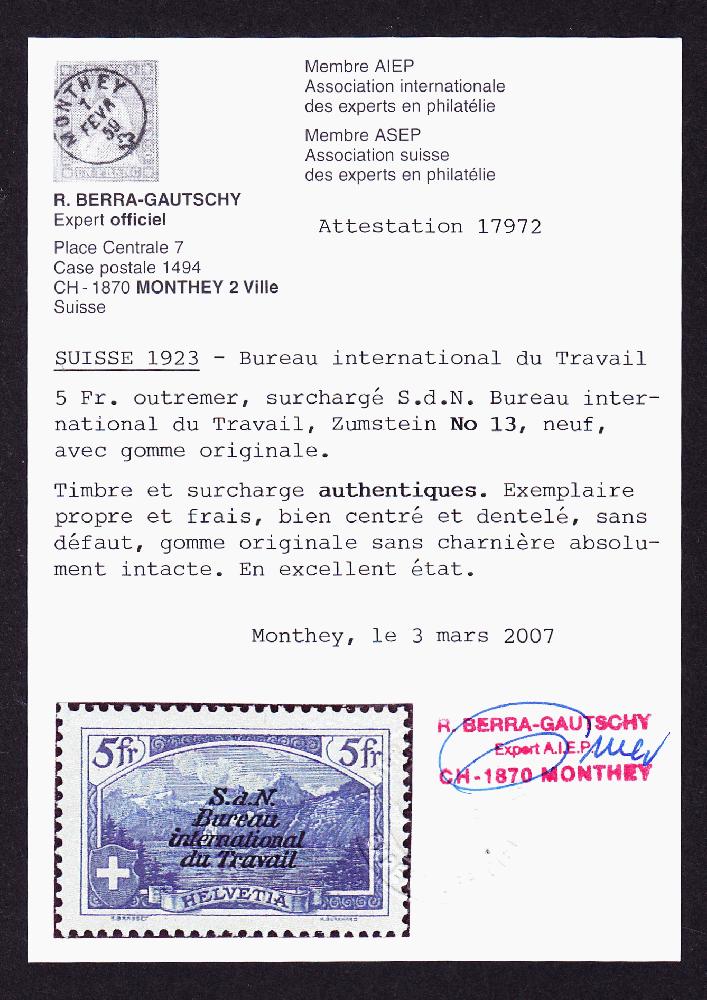 | Prüfer: | Berra-Gautschy, R. (AIEP (Association internationale des experts en philatélie)) |