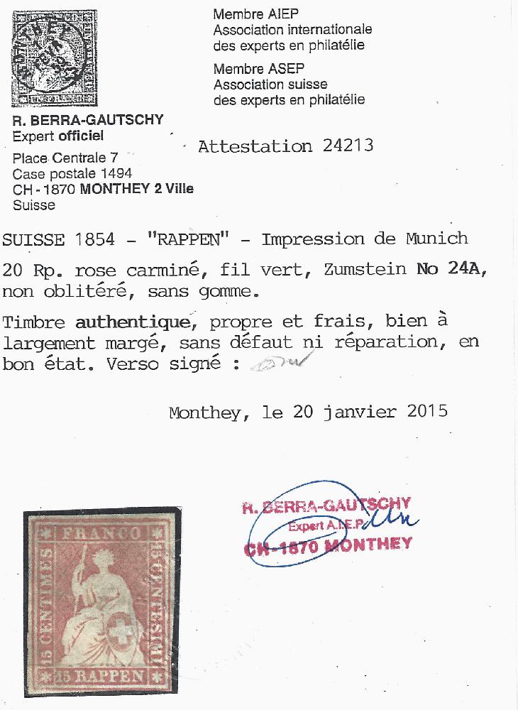 | Prüfer: | Berra-Gautschy, R. (AIEP (Association internationale des experts en philatélie)) |
