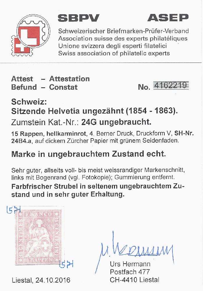| Prüfer: | Hermann, Urs (SBPV / ASEP (Schweizerischer Briefmarken-Prüfer-Verband)) |