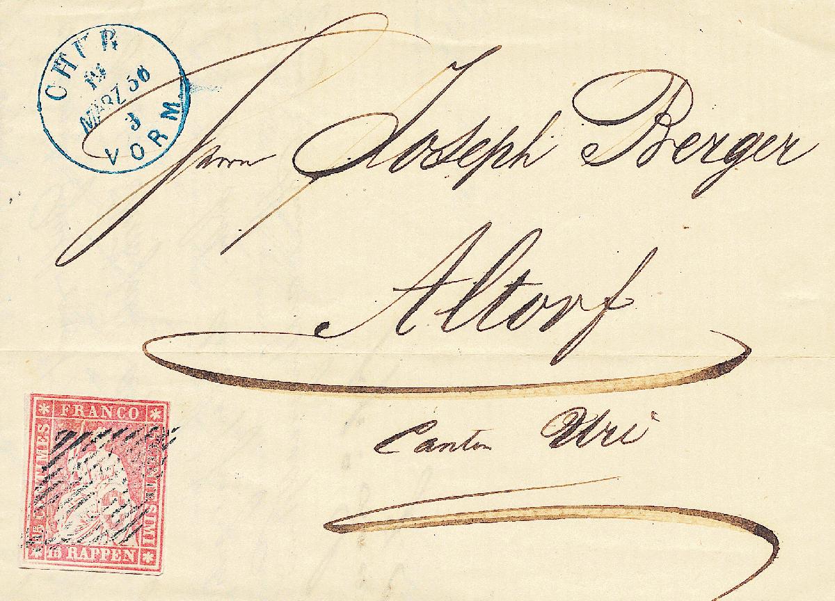 | Zusatzinformationen und Suchstichworte: | Honegger Philatelie AG - Jahresliste 2022 Los 592 Strubel - B1/B 1. Berner Druck Brief vom 19.03.56 mit schwarzer Raute von Chur nach Altdorf UR mit fehlerfreier Marke mit besonders starkem Reliefdruck. Befund Hermann Festpreis 250,00 CHF |