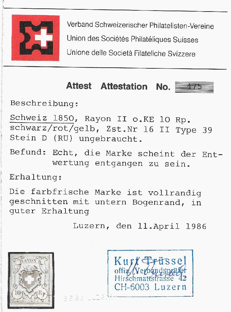 | Prüfer: | Trüssel, Kurt (SBPV / ASEP (Schweizerischer Briefmarken-Prüfer-Verband)) |