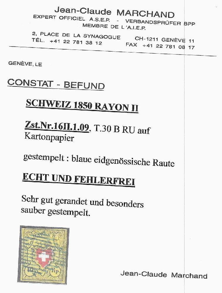 | Prüfer: | Marchand, Jean-Claude (SBPV / ASEP (Schweizerischer Briefmarken-Prüfer-Verband)) |