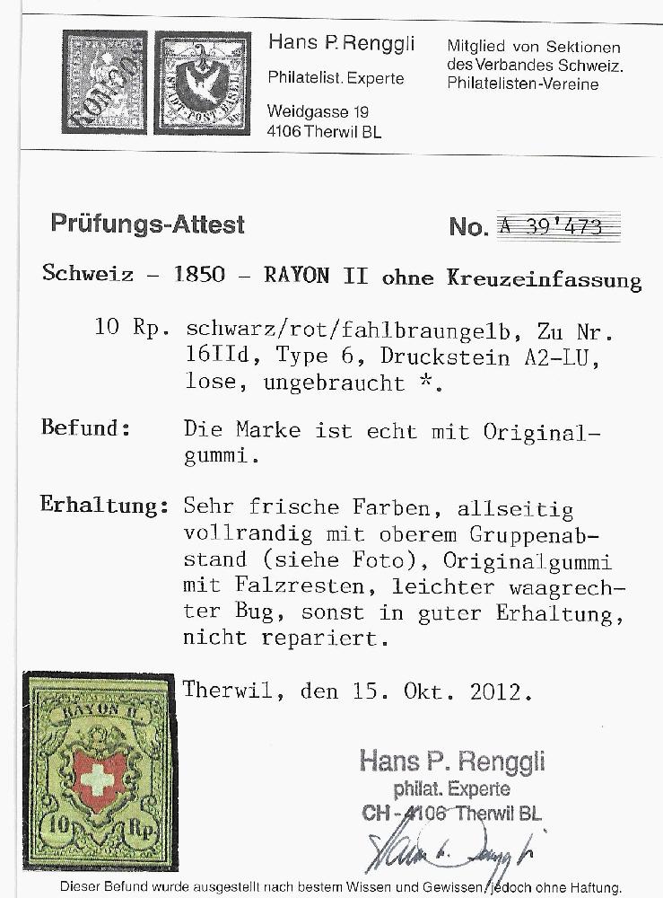 | Prüfer: | Renggli, Hans P. (SBPV / ASEP (Schweizerischer Briefmarken-Prüfer-Verband)) |