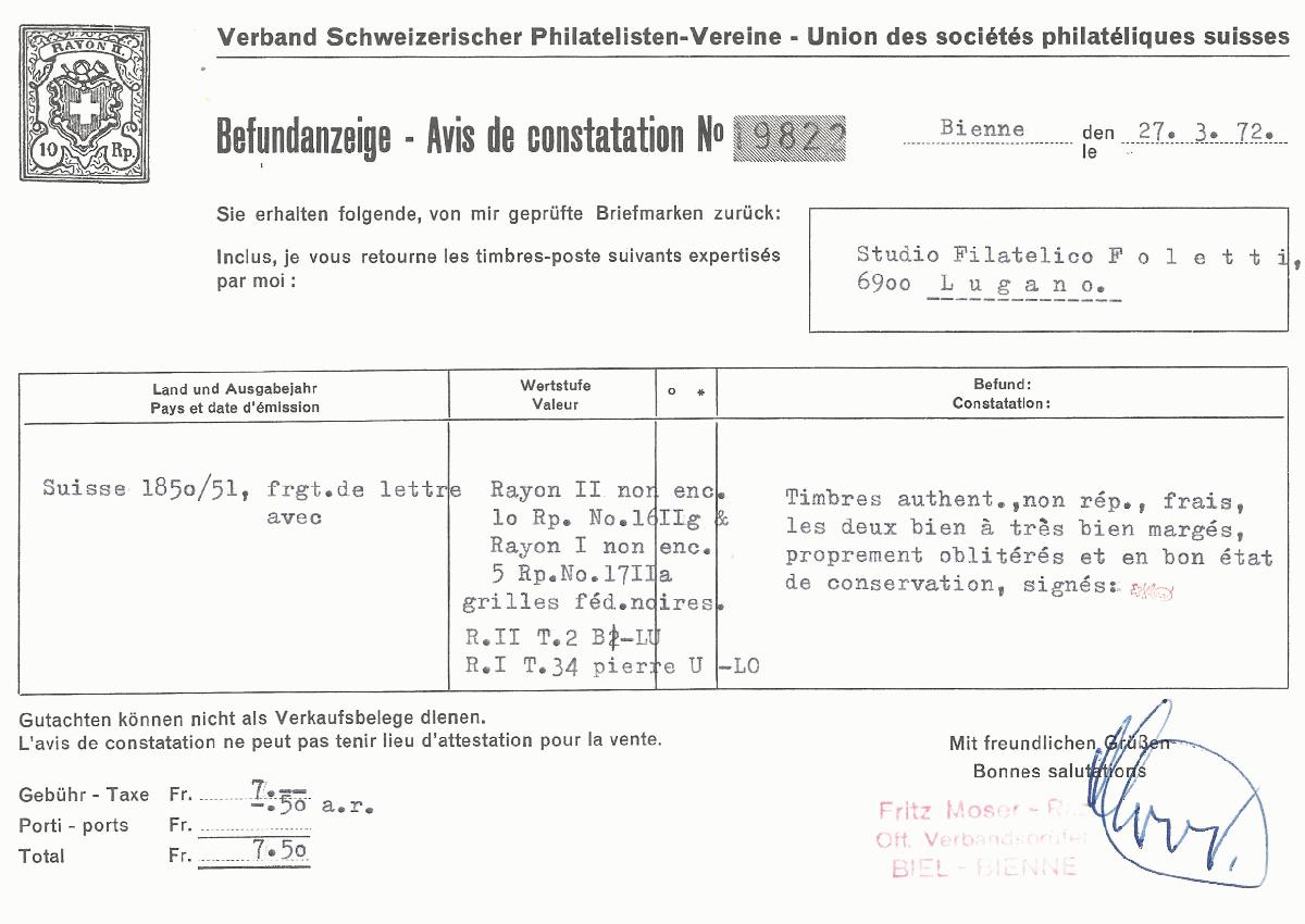 | Prüfer: | Moser-Räz, Fritz (SBPV / ASEP (Schweizerischer Briefmarken-Prüfer-Verband)) |