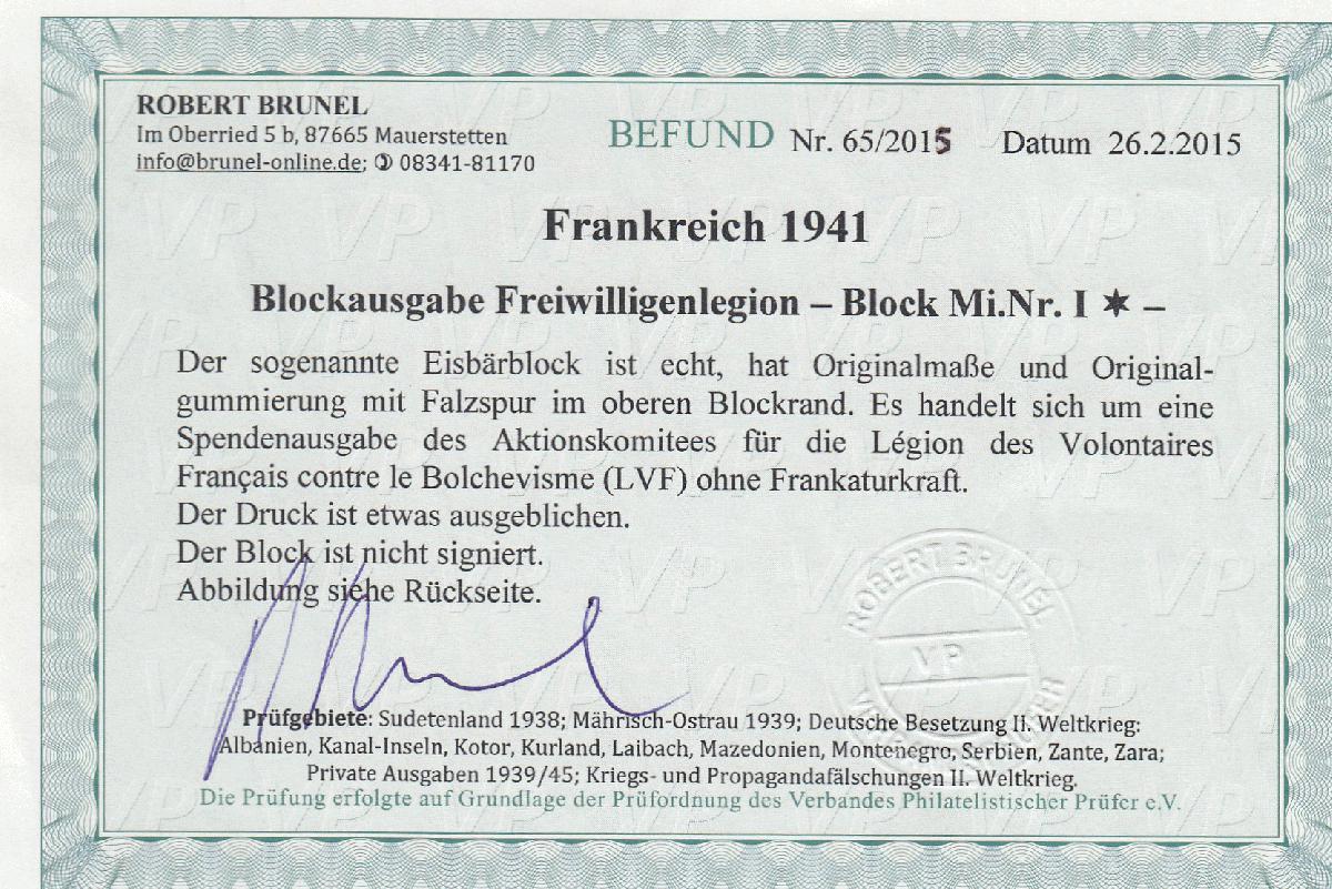 | Prüfgebiet: | Deutsche Besetzung WK 2 Französische Legion |