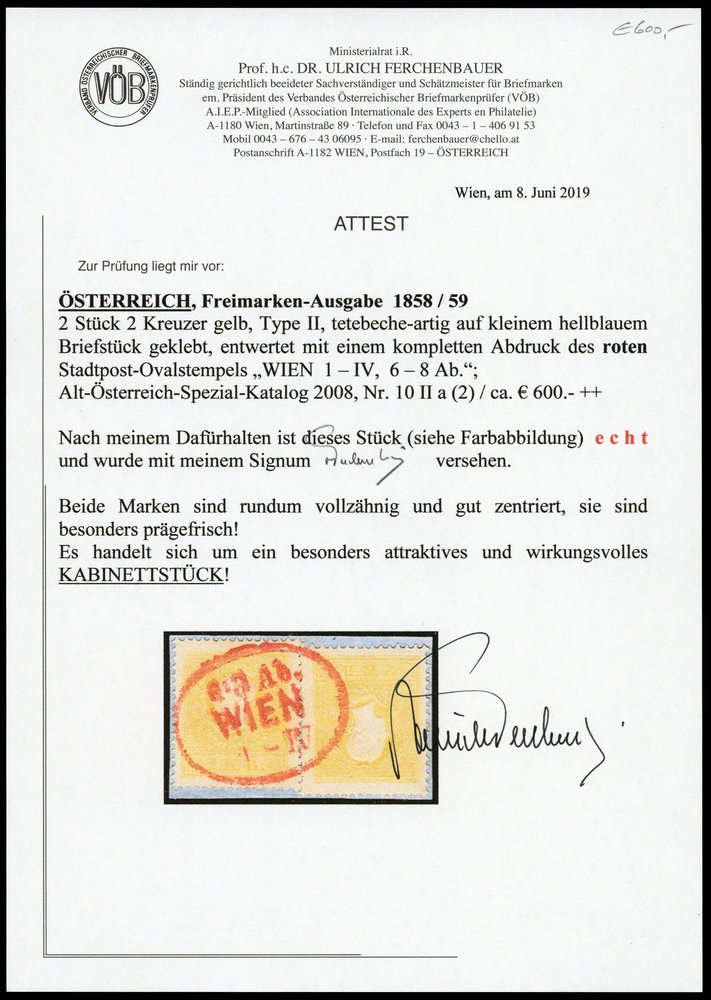 | Prüfer: | Ferchenbauer, Ulrich (VÖB (Verband Österreichischer Briefmarkenprüfer)) |