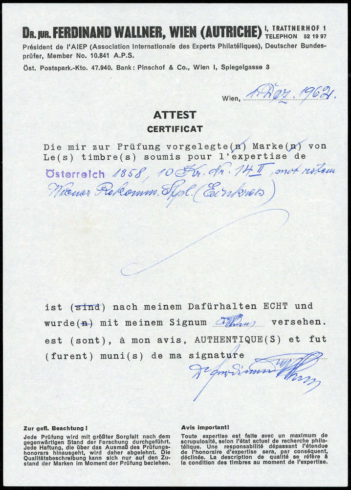 | Prüfer: | Wallner, Ferdinand (AIEP (Association internationale des experts en philatélie)) |