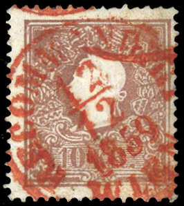| Zusatzinformationen und Suchstichworte: | DBA Freiburg GmbH Los 1670050786 Österreich 1858, 10 Kr. Kaiser, gestempelt mit rotem K1 "Recommandirt 12/12 1859 Wien", sign. und Attest Dr. Wallner Festpreis 40,00 EUR |