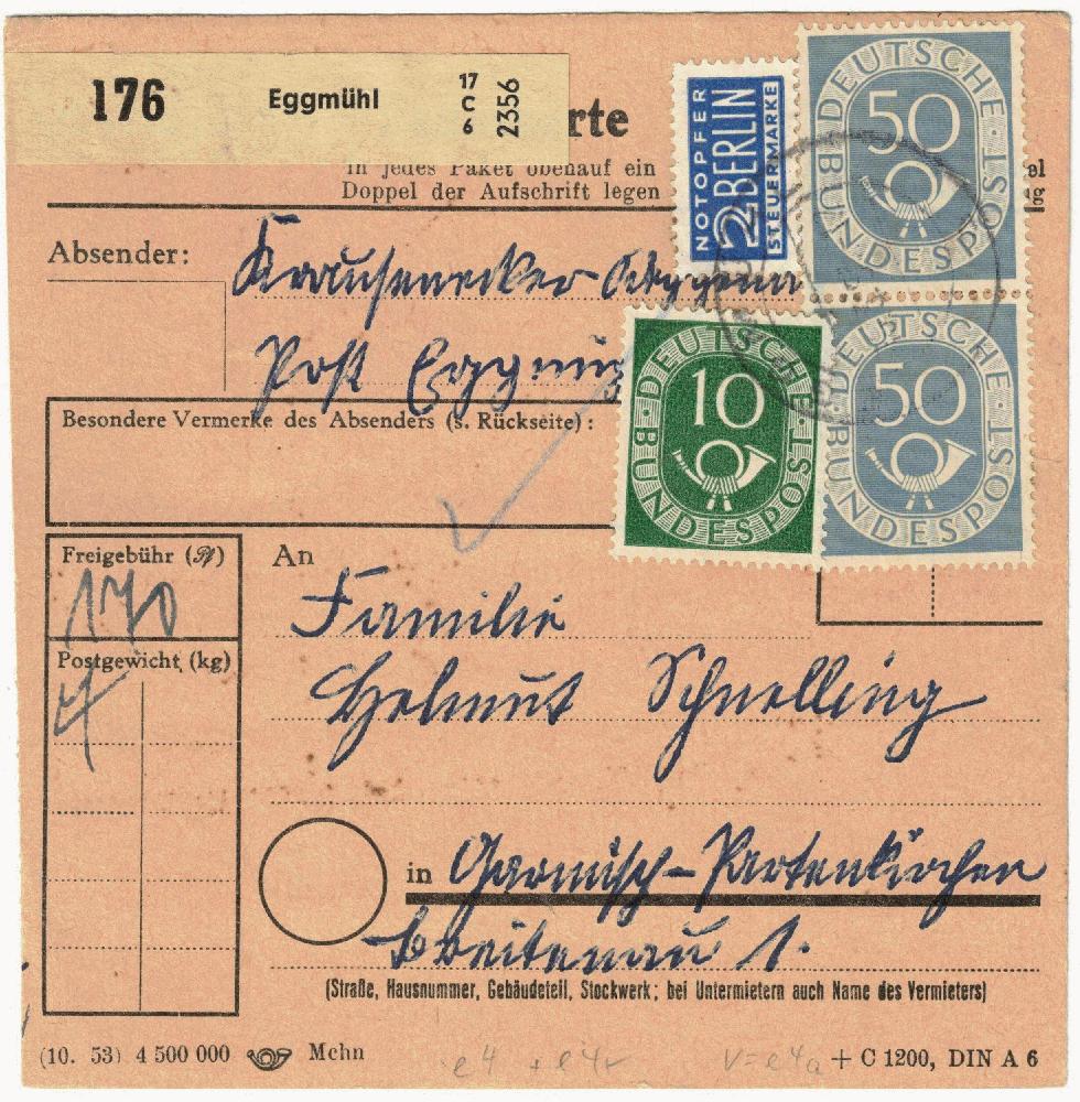 | Zusatzinformationen und Suchstichworte: | Klaus Straßberger Briefmarkenspezialversand Los 0000102488 Bundesrepublik Deutschland 50Pfg Posthorn mit Plattenfehler "senkr. Strich am Unterrand" auf Paketkarte. Rückseitig noch ein 8er-Bblock der 6Pfg PH. Befund Schlegel. Festpreis 190,00 EUR |