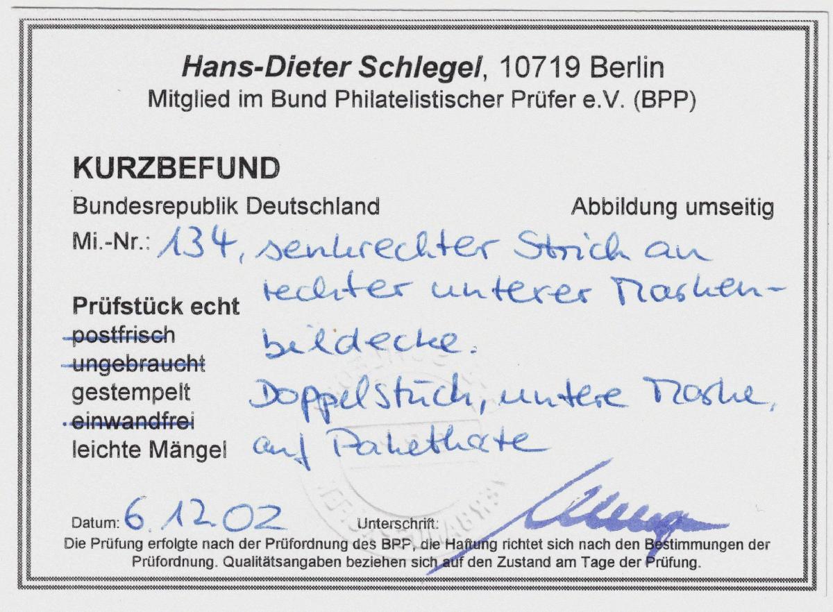 | Prüfer: | Schlegel, Hans-Dieter (BPP (Bund Philatelistischer Prüfer)) |