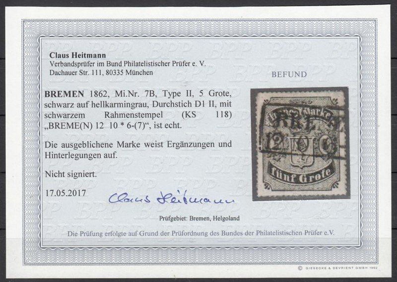 | Prüfer: | Heitmann, Claus (BPP (Bund Philatelistischer Prüfer)) |