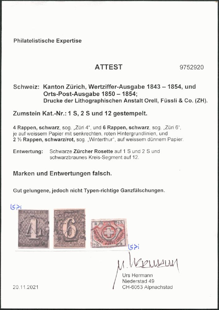 | KatalogNr: | Zumstein 1 S; 2 S; 12 |