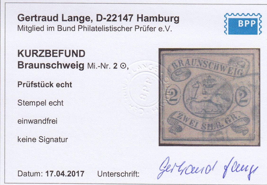| Prüfgebiet: | Altdeutschland Braunschweig |