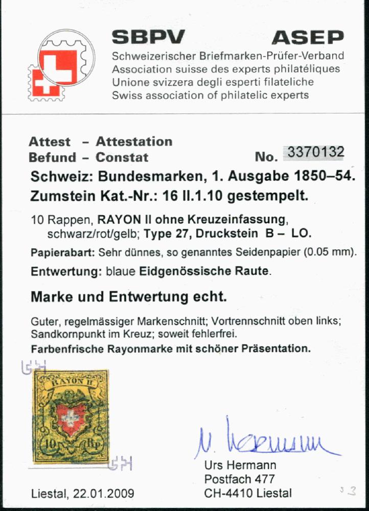 | Prüfer: | Hermann, Urs (SBPV / ASEP (Schweizerischer Briefmarken-Prüfer-Verband)) |
