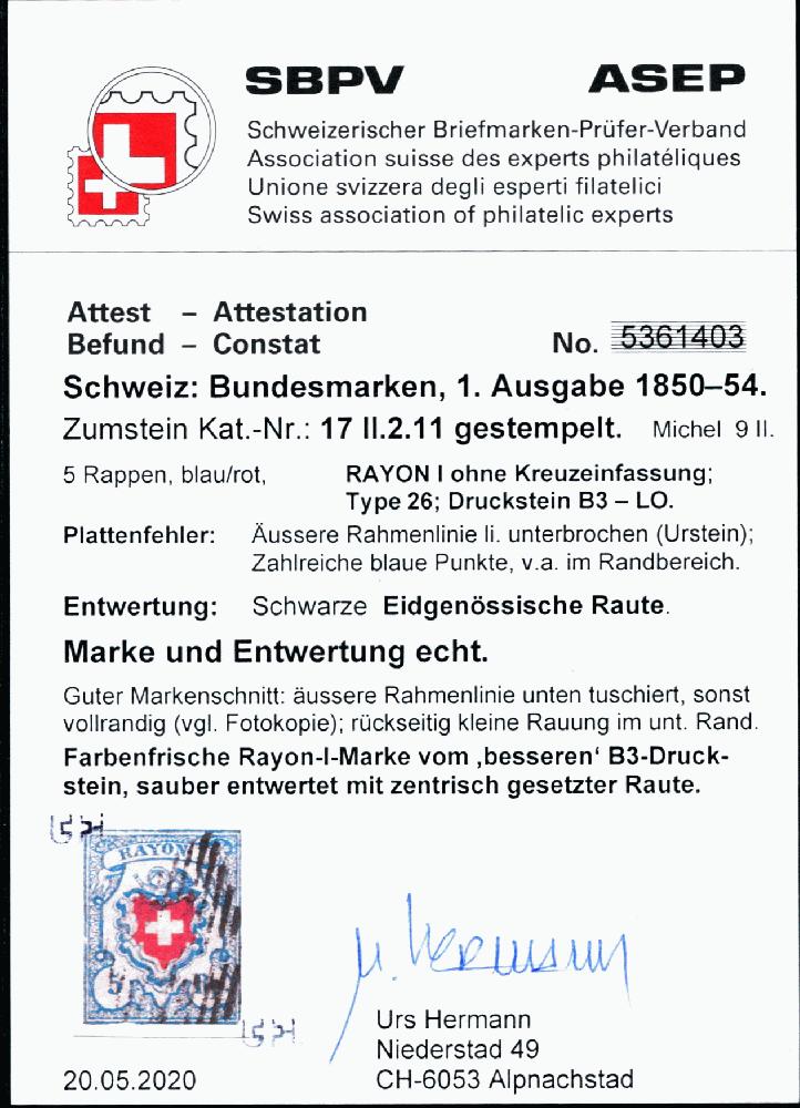 | Prüfer: | Hermann, Urs (SBPV / ASEP (Schweizerischer Briefmarken-Prüfer-Verband)) |