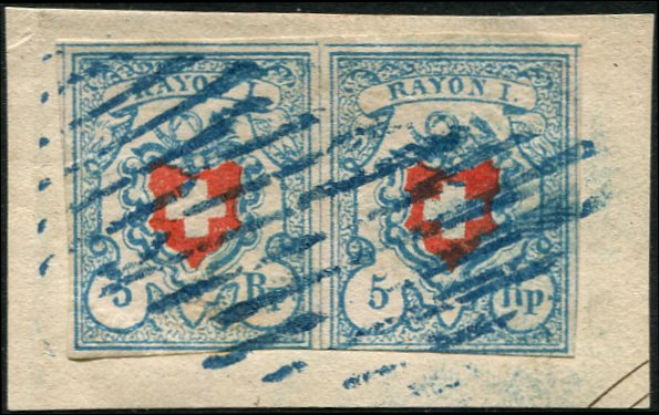 | Zusatzinformationen und Suchstichworte: | 108. Briefmarken Lenz Auktion Auktionstermin: 29. April - 5. Mai 2022 Los 2030 Schweiz 1850, 5 Rp. blau, waagrechtes Paar auf Briefstück, mit blauer Raute, Stein C2-RO, mit Spuren der Kreuzeinfassung, attraktiv, sehr gute Erhaltung, Attest Hermann, Mi.320,- Zuschlag 65,00 EUR |
