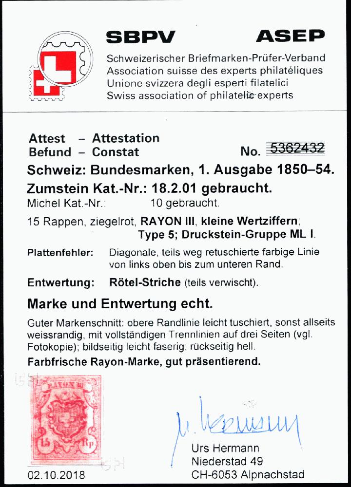 | Prüfer: | Hermann, Urs (SBPV / ASEP (Schweizerischer Briefmarken-Prüfer-Verband)) |