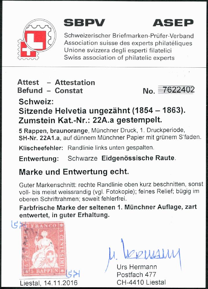 | Prüfer: | Hermann, Urs (SBPV / ASEP (Schweizerischer Briefmarken-Prüfer-Verband)) |