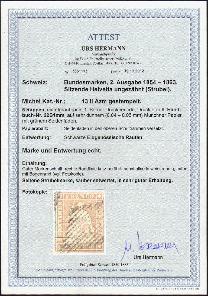 | Prüfer: | Hermann, Urs (BPP (Bund Philatelistischer Prüfer)) |