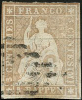 | Zusatzinformationen und Suchstichworte: | 108. Briefmarken Lenz Auktion Auktionstermin: 29. April - 5. Mai 2022 Los 2075 Schweiz 1854, 5 Rp. hellbraun, 1. Berner Druckperiode (SH-Nr. 22B1m.a). Allseits voll- meist weissrandige rechte obere Bogenecke, rückseitig leicht geraut, soweit fehlerfrei, mit Klischeefehler, gest. mit schwarzer 9-linige Raute. Farbfrischer "Seidenpapier"-Strubel, sauber entwertet mit kopffrei gesetzter Raute, in guter Erhaltung, siehe Attest/Befund Hermann 2019 Ausruf 300,00 EUR |