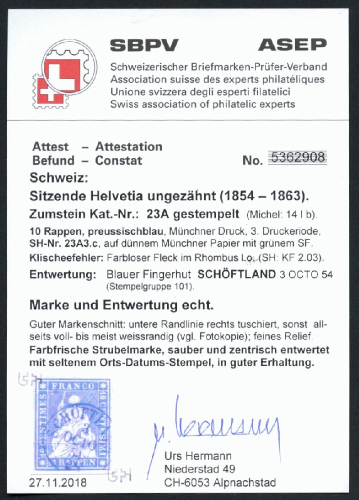 | Prüfer: | Hermann, Urs (SBPV / ASEP (Schweizerischer Briefmarken-Prüfer-Verband)) |