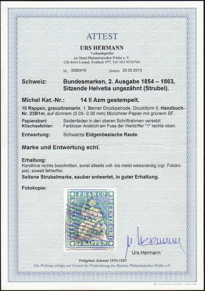 | Prüfer: | Hermann, Urs (BPP (Bund Philatelistischer Prüfer)) |