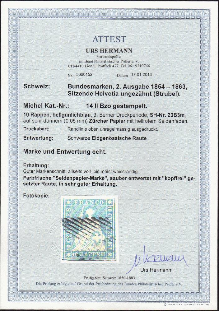 | Prüfer: | Hermann, Urs (BPP (Bund Philatelistischer Prüfer)) |