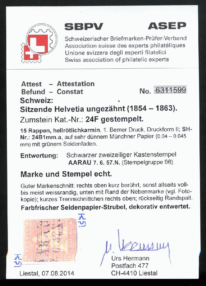 | Prüfer: | Hermann, Urs (SBPV / ASEP (Schweizerischer Briefmarken-Prüfer-Verband)) |